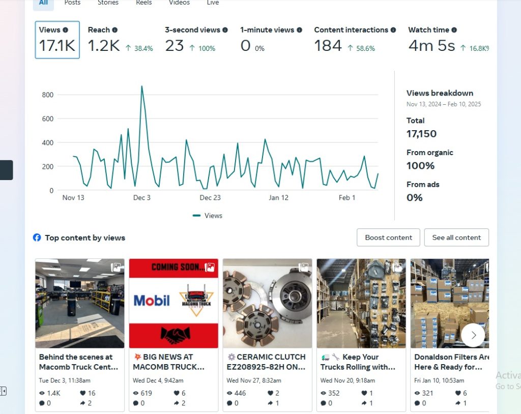 The goal with Macomb Truck Center was to get more traffic and orders through their website by improving their presence on social media. I set up a consistent posting schedule and focused on content that actually speaks to people in the heavy truck industry — nothing random, just posts their audience could relate to.